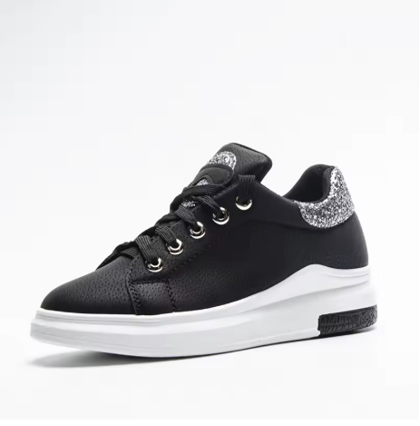 The charming detail is the shimmering, textured accent on the heel, which adds personality and a touch of glamour to every step. It’s the ideal sneaker to pair with jeans, dresses, or your favorite casual outfit, providing long-lasting comfort to keep up with your routine.